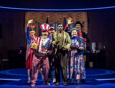 Assassins was the first major production of this biting musical comedy since Stephen Sondheim’s death in 2021. Directed by Polly Findlay, this time-bending history of the men and women who attempted to assassinate a President conjured up a surreal carnival atmosphere which extended into the Festival Theatre foyer, with hotdog stalls and music plunging audiences into the world of the US political arena.