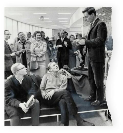 Famously, a programme about Stratford Festival Theatre in Canada inspired Leslie Evershed-Martin to found a theatre in Chichester. Stratford and Chichester are cities with a similar size, demographic and location - both are just over an one outside major cities London and Toronto. After hearing the programme, Evershed-Martin flew to Canada to meet director Tyrone Guthrie and discuss the founding of CFT, thus beginning our unique connection. Both theatres were built with a similar design and a thrust stage - the first of its kind in the UK in 400 years. Stratford even provided planks of Canadian maple wood for the Theatre's first stage and, in return, were presented with a Loving Cup (seen below) to mark the friendship.
