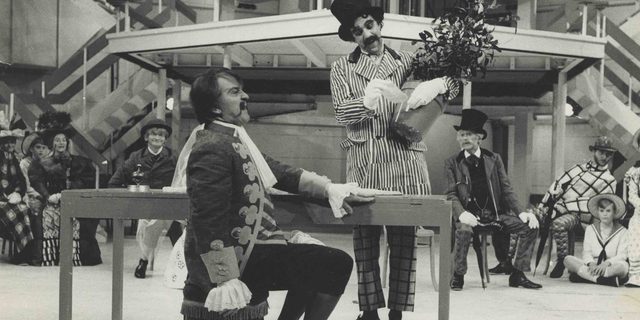 The 1967 season brought a challenging situation for Artistic Director John Clements. Danny Kaye, the internationally famous film actor, was due to star in a production of The Servant of Two Masters, but withdrew at the last minute to assist the Israeli government after the outbreak of The Six Day War with Egypt.