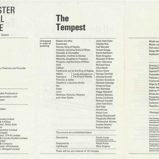 The 1968 season saw CFT's first and only staging of Shakespeare's The Tempest, with Artistic Director John Clements as Prospero alongside a young Simon Ward as Ferdinand. The set was designed by pioneering stage designer Ralph Koltai, with sweeping shades of white and abstract block shapes typical of Koltai's style during this period. The model box for the production is one of the few in existence from CFT's history, lovingly preserved at Pallant House Gallery. Explore a new 3D rendered version below.
