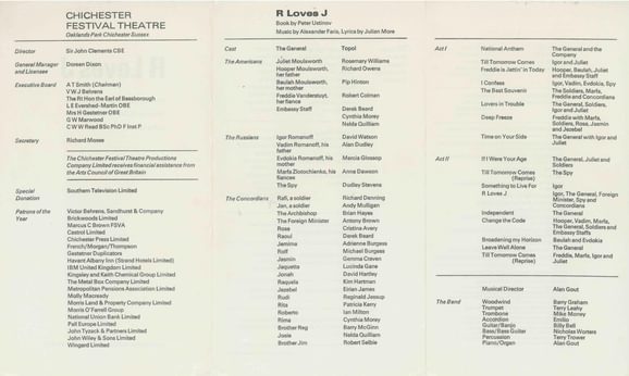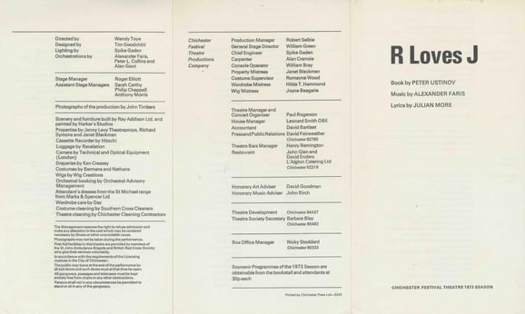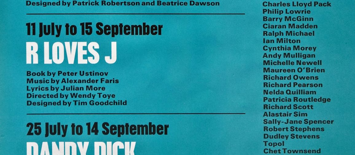 Wendy Toye directed R Loves J, a musical version of Peter Ustinov’s play. She returned the following year to direct the Vanbrugh farce The Confederacy and Follow The Star, a musical nativity starring Tony Robinson. Follow the Star was revived several times with Toye directing it again in 1975 and 1977, and is remembered fondly as a favourite of audience members. In 1975 she directed a new play by Andrew Sachs, Made In Heaven, and Make Me a World at Christmas the following year. Her final CFT production was Miranda in 1987, an adaptation of Goldoni by Beverley Cross and starring Penelope Keith. In total, she directed eight Festival Theatre productions following her 1973 debut.