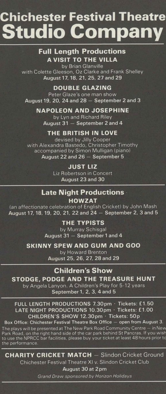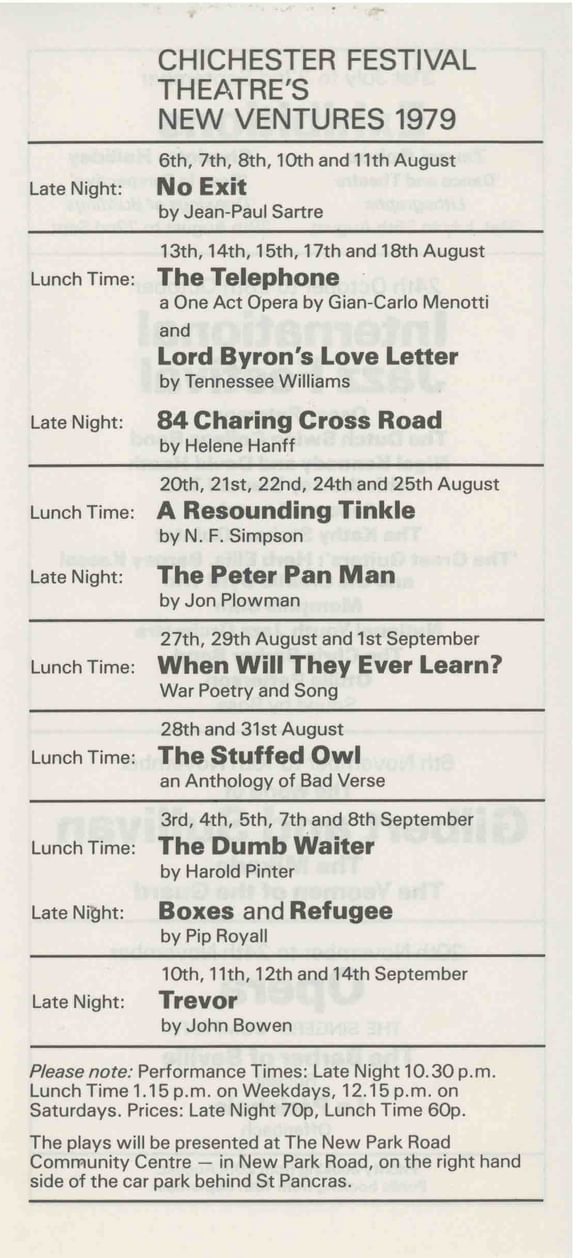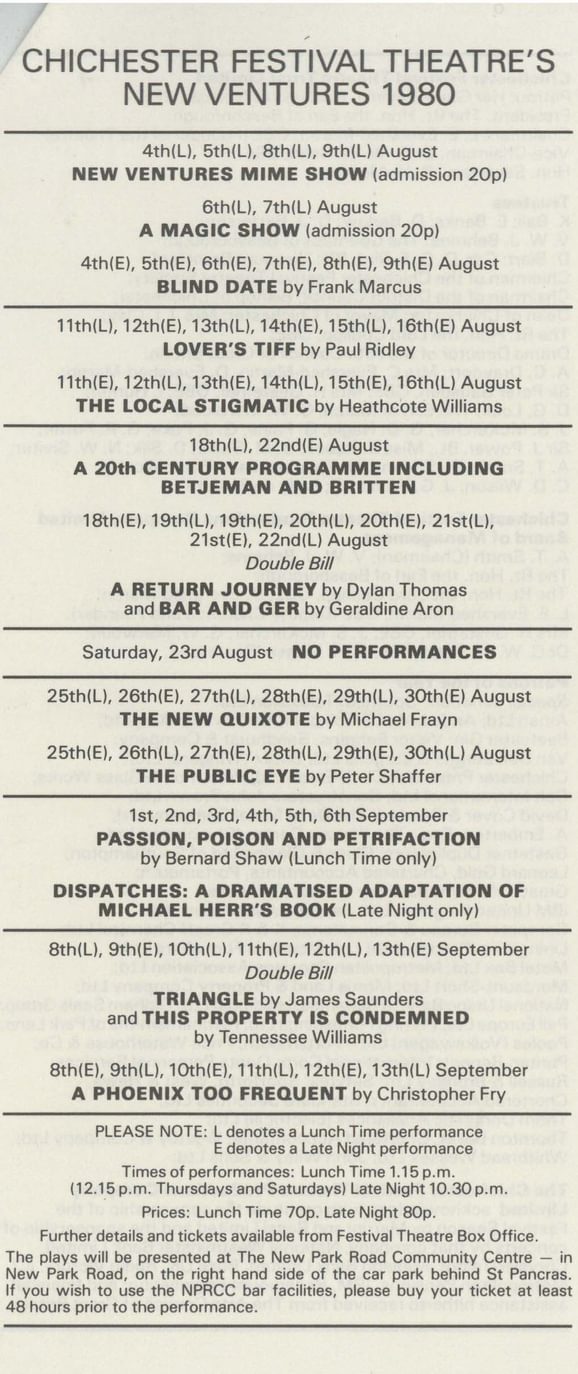New Ventures production listings, taken from Festival Theatre cast lists 1979-1982