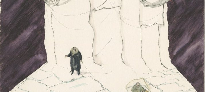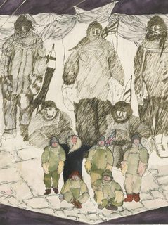 Pamela Howard's set was stark, dramatic but simple, made of folds of white cloth to look like snow and ice drifts, and the actors would just appear from behind them pulling sleds which were three-quarter-size mock-ups of originals, made as much as possible from the same materials, and the clothing was just like the originals too. It was a really hot summer, but people were sitting there shivering: that's how good it was.