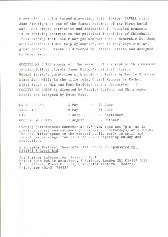 Explore some of the celebrations below, including the season press release and a special edition of 'Chichester Festival Theatre News'.