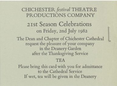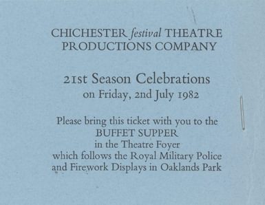 In 1982 Chichester Festival Theatre celebrated its 21st season with a number of events alongside the Festival season including a special gala concert with Princess Grace of Monaco (Grace Kelly) on 16 March.