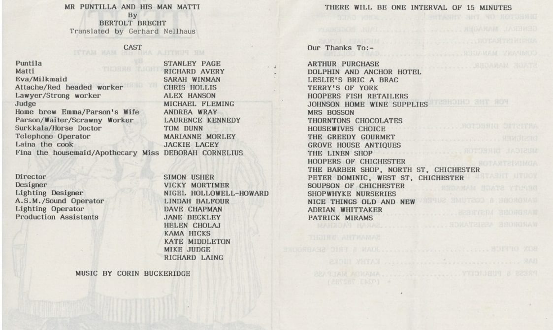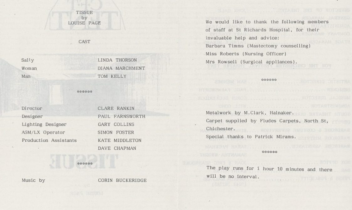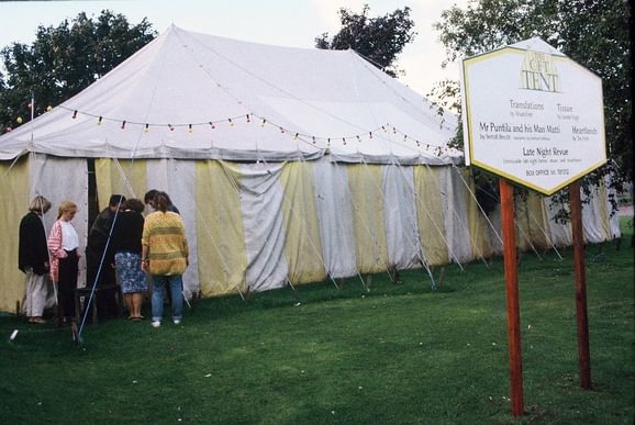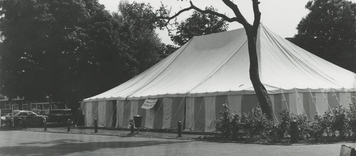 In 1983 Chichester Festival Theatre had created a temporary studio space to hold a summer festival of performances, called ‘The CFT Tent’ or ‘The Tent’ - a huge yellow and white marquee opposite the Theatre. The project was an evolution of Keith Michell's New Ventures project, which had become too scattered at venues across the city