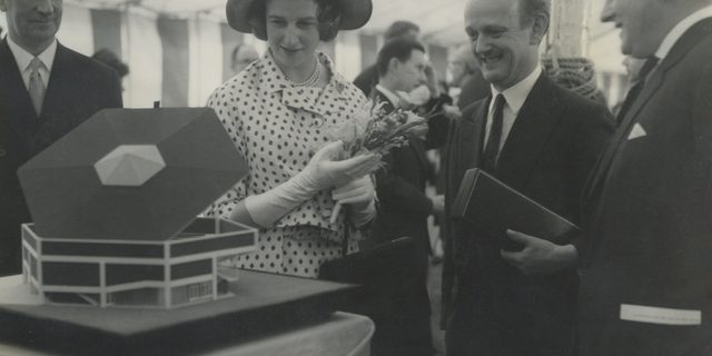 Exchanging gifts in the CFT foyer 1962