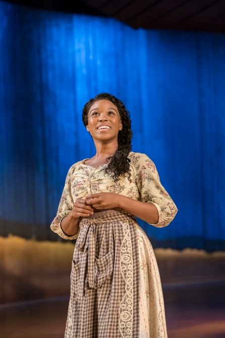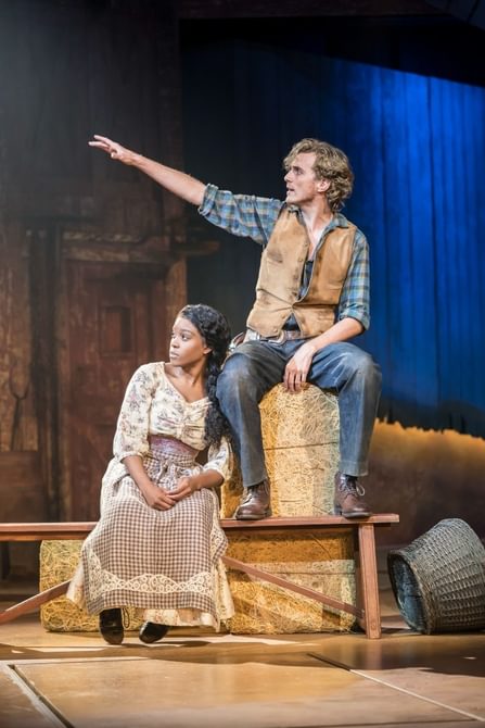Award-winning director Jeremy Sams returned to Chichester delivering a fresh interpretation focusing on youth and new beginnings, emphasising the themes of violence in contrast with youthful naivety. A memorable set by Simon Higlett extended the stage upstage into the loading dock to give the audience the sense of the vast plains of the American South. In line with Sams' interpretation, two young actors were cast in the leads, both making CFT debuts: Amara Okereke as the independent female protagonist Laurey and Hyoie O’Grady as cowboy Curly. In 2022, Okereke starred in the West End's revival of My Fair Lady.